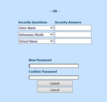 5. Answer the three questions and click Verify. The curser will then be placed in the New Password box