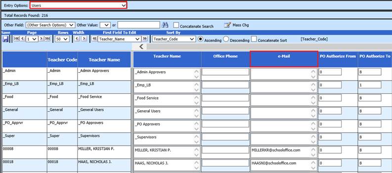 Before setting this option, the email address, for users you wish to allow access to the system, must be accurate. The user email address may be maintained using the master file Vertical or Horizontal change programs.