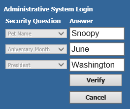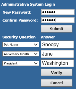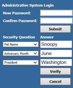 The Forgot or Change Password option allows a user to select and answer security questions. Once these questions and answers are set up, the user can access the Forgot or Change Password option to answer the security questions and then create a new password in the event they have forgotten their password or would like to change their password.