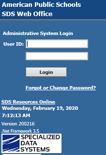 A “Build Date” is displayed on the Web School Office login screen. This is the date the system was last updated. (i.e. 200712 = yearmonthday = 07/12/2020). It appears next to the word "Version" in the screen shot above.