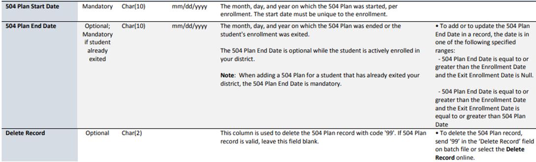 •Enrollment record Home RCDTS matches 504 Plan record’s Home RCDTS