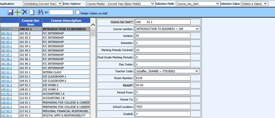 4. Click the Entry Options dropdown and choose Course Master-Current Year (Basic Fields) or Course Master-Current Year (All Fields).