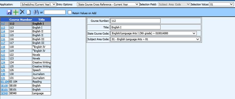 •Using the master file horizontal entry and selecting view State Course Subject Codes, enter the state assigned Subject Area Code.