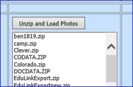 •Locate the zipped file, from the list, that contains your photos. Click on the filename and then on the “unzip and Load Photos” button.