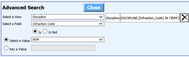 4. Select the value for which you want to search. The value can be selected from the dropdown or you can select “Key a Value” and type the value you want to search for in the box.
