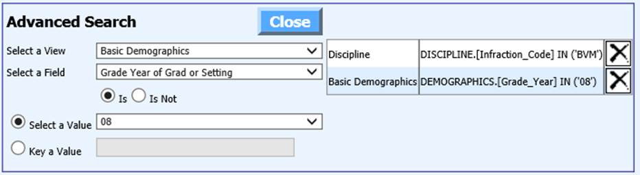 Additional searches can be set up by repeating steps 1-4 above. As additional search definitions are added, they will be added to the Advanced Search screen and the student display will update to display only students meeting all definitions.