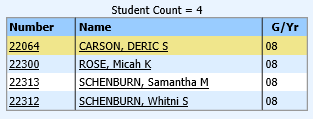 After selecting the value, the search definition will be added to the screen and students meeting the search definition will be displayed as shown below.