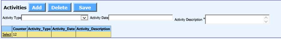 Click the word “Select” on the record you wish to edit. The fields will display for editing.