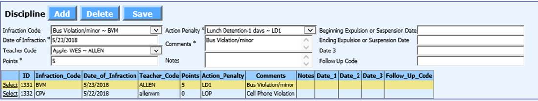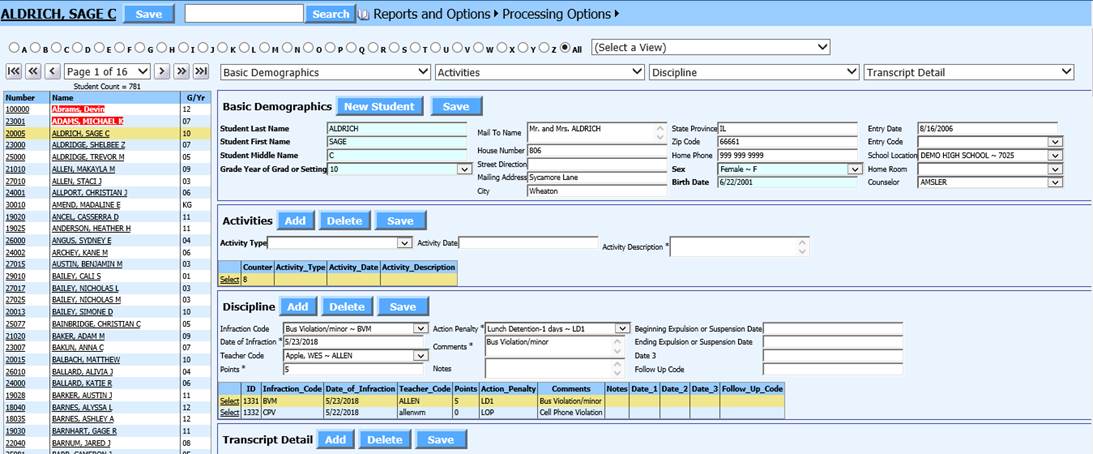 Edit records in other Data Entry & Changes|Student Maintenance views such as Activities, Discipline, Transcript Detail, etc. following these instructions: