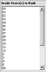 4. Grade Years to Rank – If you wish to only rank a specific grade year(s), click on the grade year(s) you wish to rank in the box shown below to highlight those years. Multiple grade years may be selected by holding down the Ctrl key on your keyboard as you click on the grade years. If you wish to rank all grade years for your school location, this step can be skipped.