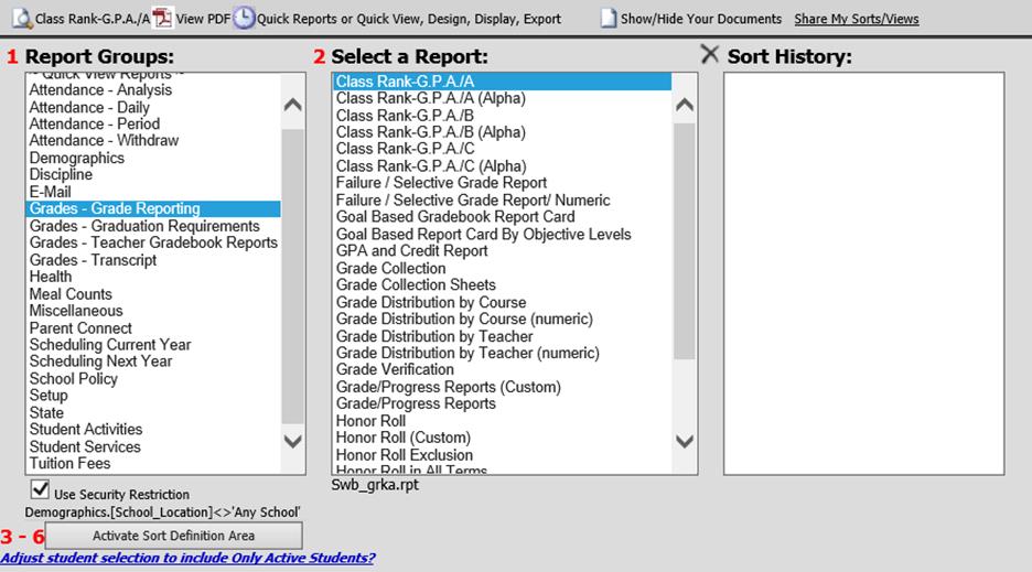 Select the desired Class Rank report in box 2 Select a Report.