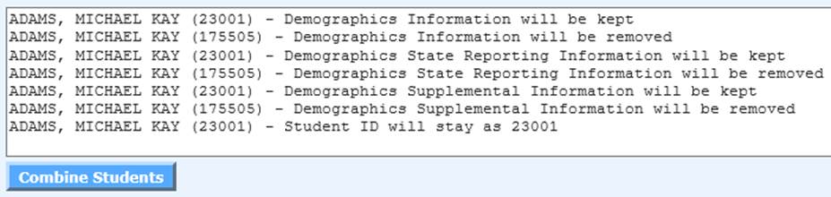 After the merge is complete be sure to evaluate ALL data for the student in ALL areas, (i.e. transcripts, health records, activities, etc. and manually adjust any data as necessary.)