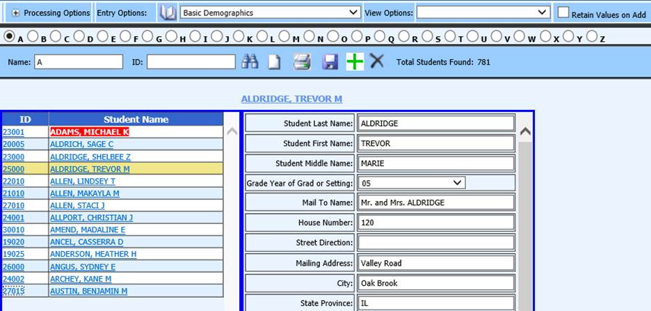 Select the student you wish to change demographic data on.