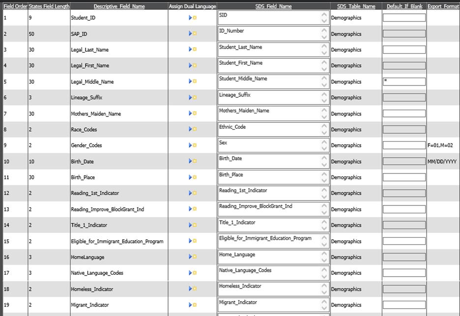•In the column “Default if Blank”, optionally enter a value to be exported for any students who have no data in the selected field.