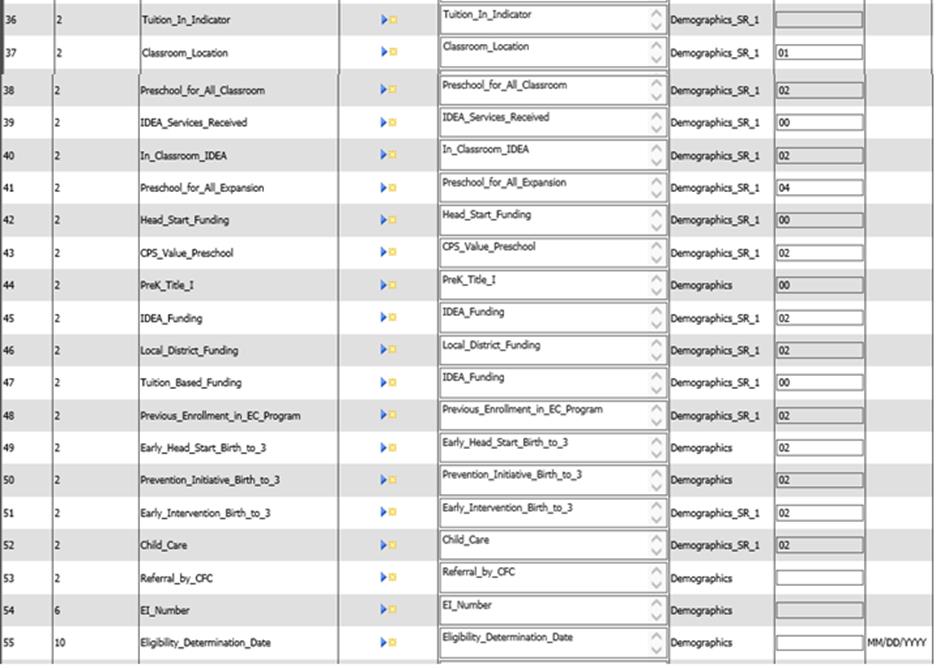 •The field from SDS will be listed in the column “SDS field name” and the source table will be listed in the column “SDS table name”.