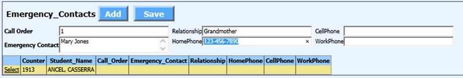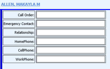 Contact 1, Emergency Contact 1 Relationship, Emergency Contact 1 Cell Phone,