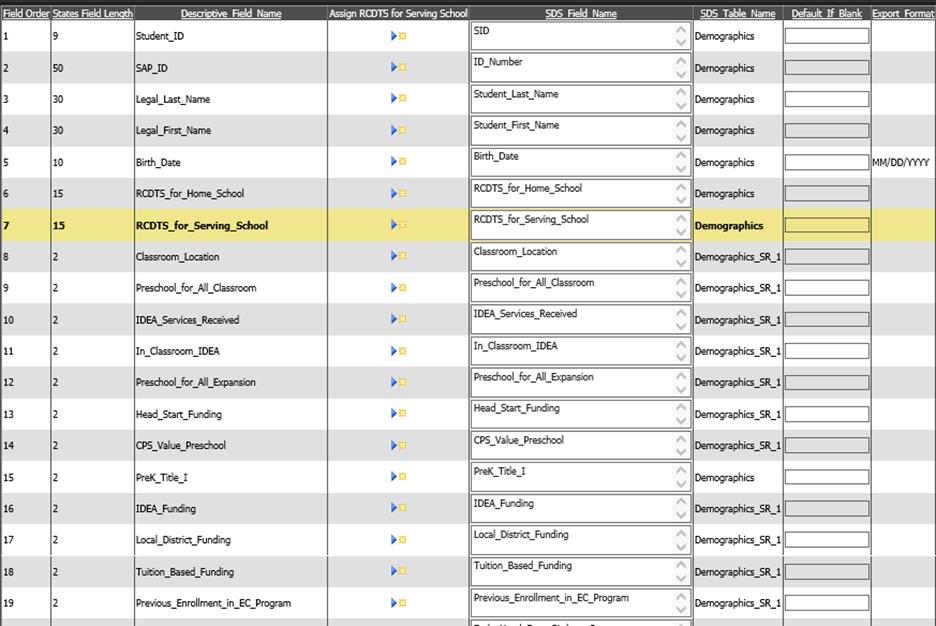 •In the column “Default if Blank”, optionally enter a value to be exported for any students who have no data in the selected field.