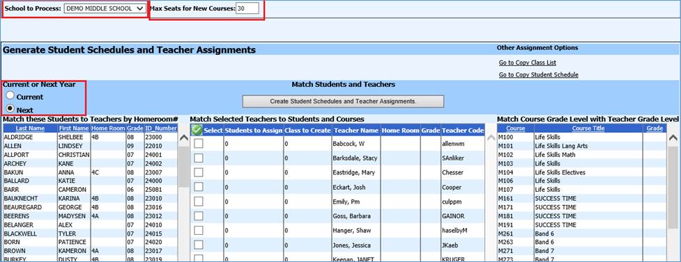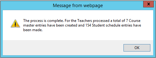 •Click on the OK button to Create Student Schedules and Teacher Assignments.