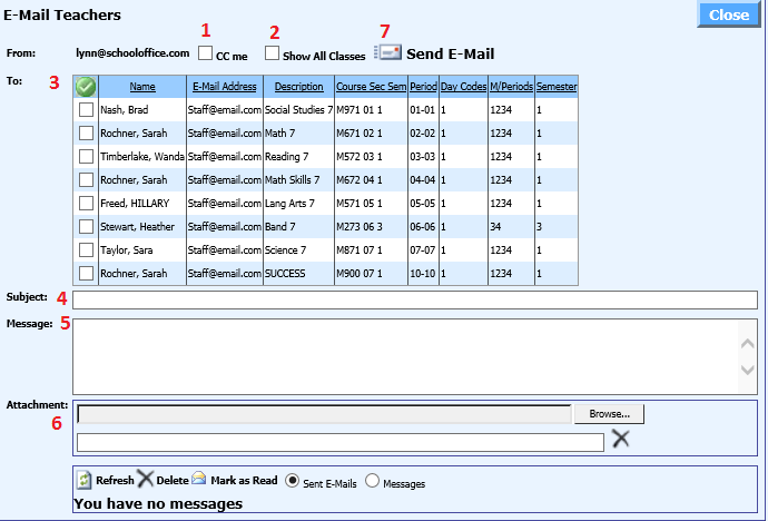 NOTE: For instructions on required set up that must be done in order to use the E-Mail Teacher option