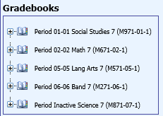 By selecting the Expand Grade Book tree option, all grade books for all classes in the tree will display.