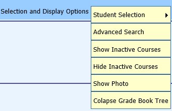 To collapse the tree, click on Selection and Display Options|Collapse Grade Book Tree.