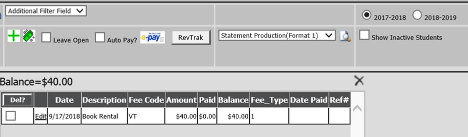 5. The remaining fields will fill in automatically with the information previously entered on the selected fee code. These may be edited to fit the situation (example: if you need to change the amount you are charging this student for an item).