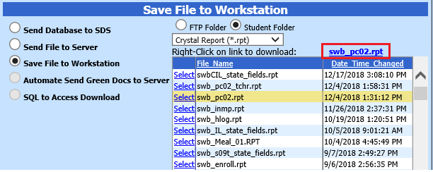 This option allows you to get a file from your SDS directory or FTP site and transfer it to your workstation. This could be used if you want to customize an SDS report and test it on your own workstation.