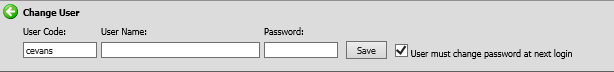 The Change Password button opens the screen below allowing you to edit a user’s password. Click the Save button after making changes in this screen.