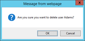This button is used to delete the user selected in the User list. When this button is clicked, a confirmation message will display confirming you want to delete the user listed in the message. Double check that the user listed in the message is the user you wish to delete and click OK to delete or Cancel if you don’t want to delete this user.