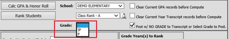 0.  Optionally, if this box is check marked, a grade may be selected to fill in on all transcript records.