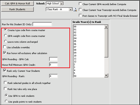 Clear Current GPA records before Compute – If checked any current year GPA information will be cleared before recreating during the GPA Calculation process.