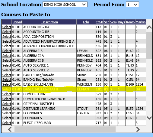 If you are removing a class section from your course master, you first need to remove all students from the course. The Copy Class List feature in the Elementary Scheduling area of the program provides a quick and easy method to do this. Follow the steps listed below.