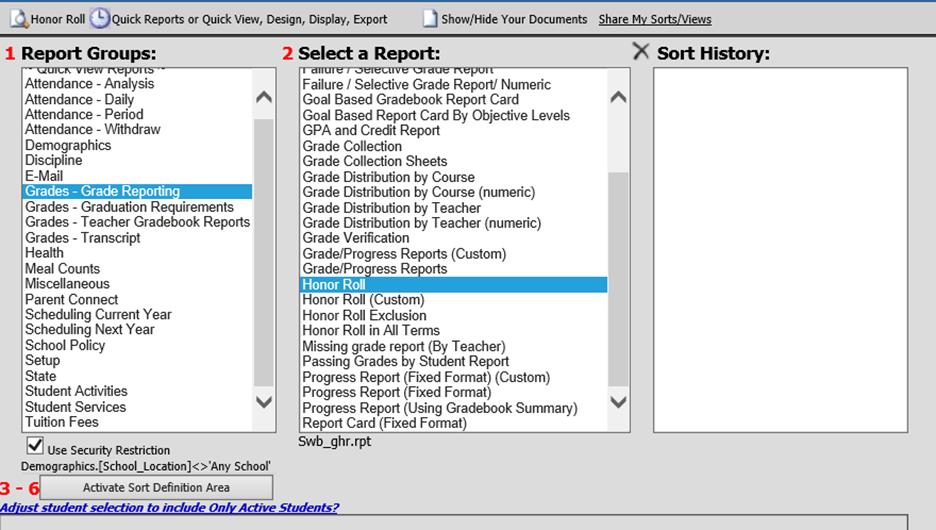 Select the desired Honor Roll report in box 2 Select a Report.