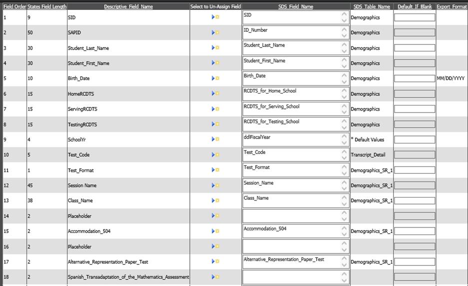 • The field from SDS will be listed in the column “SDS field name” and the source table will be listed in the column “SDS table name”.