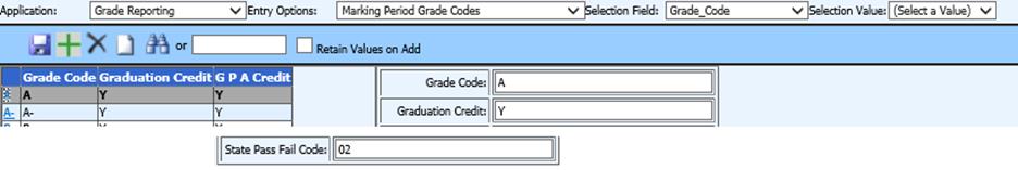 Application: Grade Reporting | Entry Option: Marking Period Grade Codes | Field:
