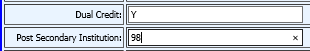 •If the student received high school and college credit for this course, enter “Y” in this field for each course in which the student earned dual credit. Otherwise leave this field blank.