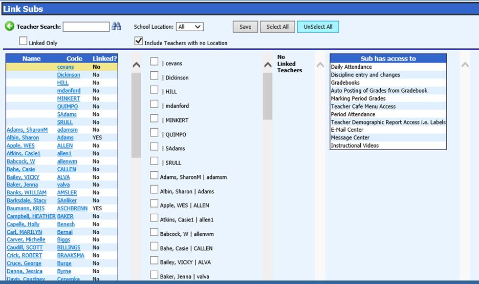 5. Save = Saves the link(s) that were set between the sub and the teacher(s).