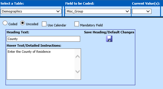 heading text to County so the field would be listed with County as the heading