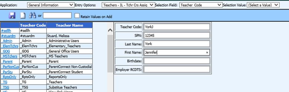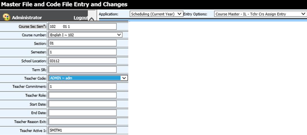 then select the Entry Option “Teachers – IL – Tchr Crs Assig” and enter the