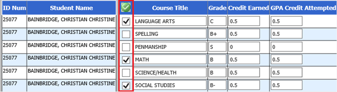 This makes is easy to review and edit this student’s transcript detail records.