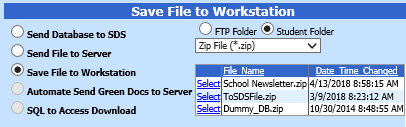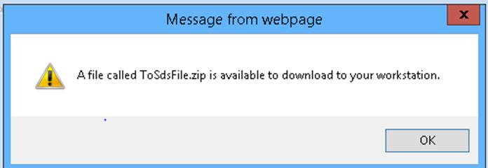 6. Click “Save” and it will download to your local workstation. The ToSDSFile.zip contains the sdsxplan.mdb, your School Office database.