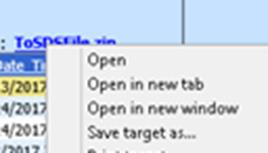 5. Click on the blue “Select” link to the left of the file name, a link to download will appear above the list. Right mouse click on that “ToSDSFile.zip” link and “save target as” (figure 12) or “save file as” depending on the browser you are using. You can then navigate to where you would like to download the file, and also change the name.