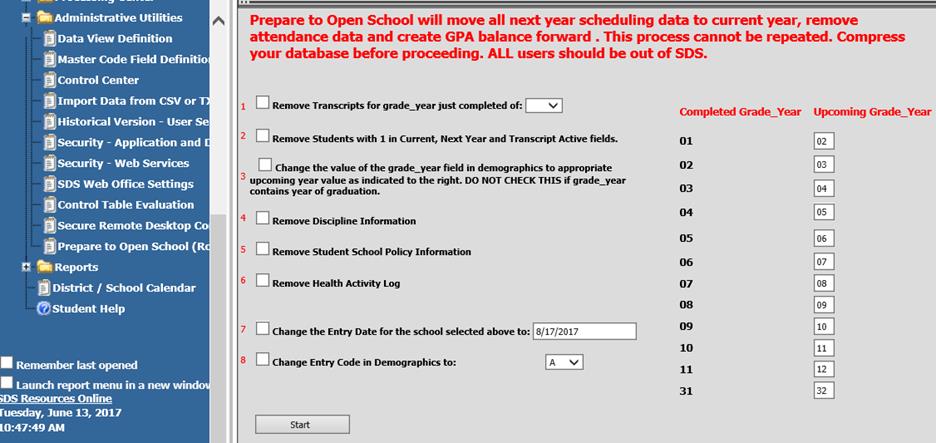 The Roll over is not a difficult process, but there are several steps and due to the infrequency we understand the need for detailed information. This guide will assist you in a seamless roll over from your current year to the upcoming school year. As always, if you have any questions, please contact the SDS support staff.