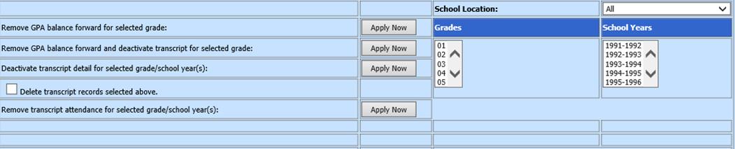 Deactivate or Delete Transcripts from Selected Grade for selected school years