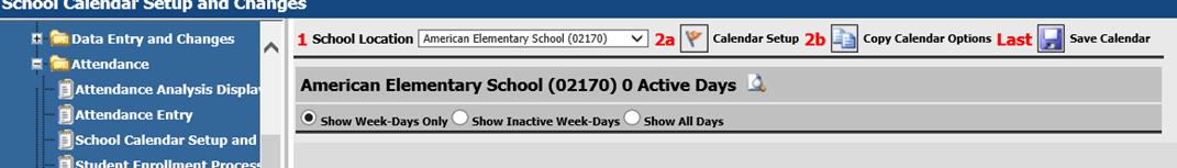 13. The LAST step is to save your calendar. When you click on the save diskette, the calendar will create. Once created, go to calendar and inactivate student non-attendance dates and save.