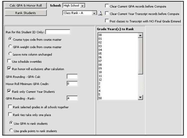 In case there were any grade changes since the last GPA calculation, it is always a good idea to compute the GPA and re-rank students immediately PRIOR to rolling over. This will ensure that the transcripts and cumulative GPA reflect the grades at the time of roll over.