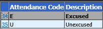 The codes displayed below are system defined and should not be removed. No further Excused/Unexcused codes should be added in this area.