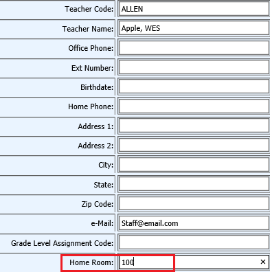 If teachers will be entering Daily Attendance by Homeroom, each homeroom teacher’s homeroom code should be entered on their teacher code in: