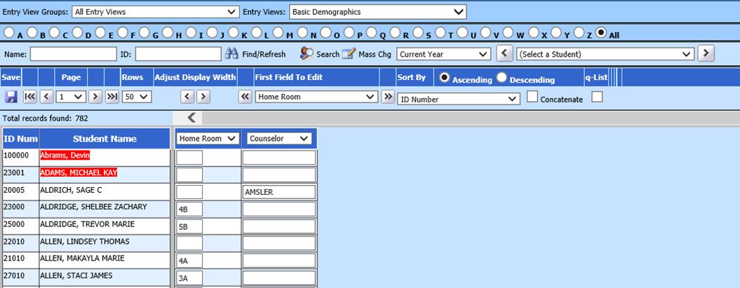 NOTE: To allow editing of the Homeroom field in the horizontal entry screen:
