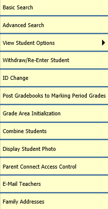 Processing Options in Data Entry & Changes|Student Maintenance provides you with the following options.